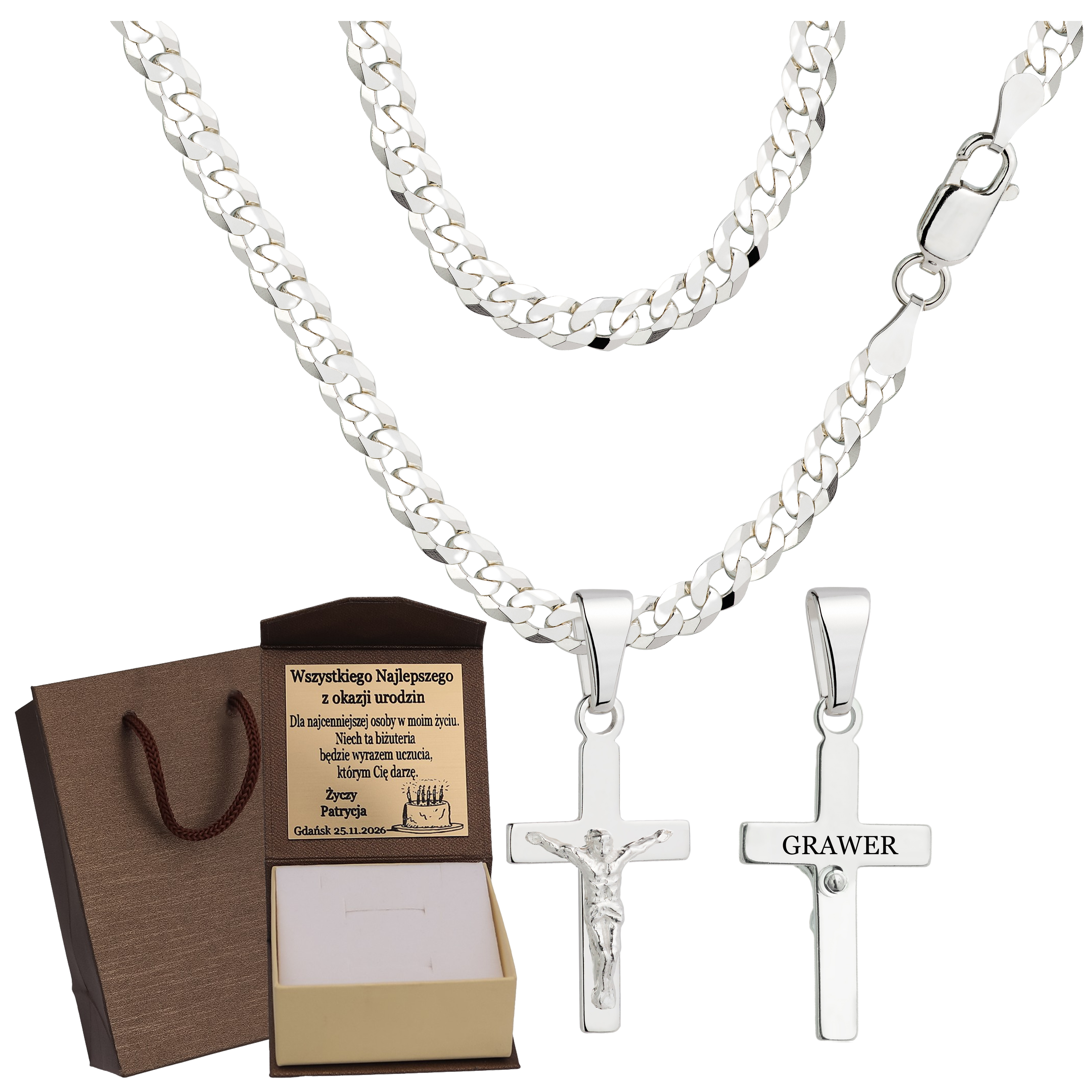 ŁAŃCUSZEK SREBRNY PANCERKA Z KRZYŻYKIEM PR. 925 3,8 MM