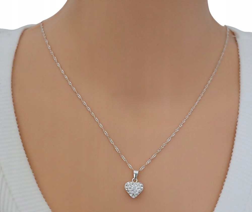 ŁAŃCUSZEK SREBRNY SINGAPUR Z ZAWIESZKĄ I KOLCZYKAMI SERCE PR. 925 1,6 MM