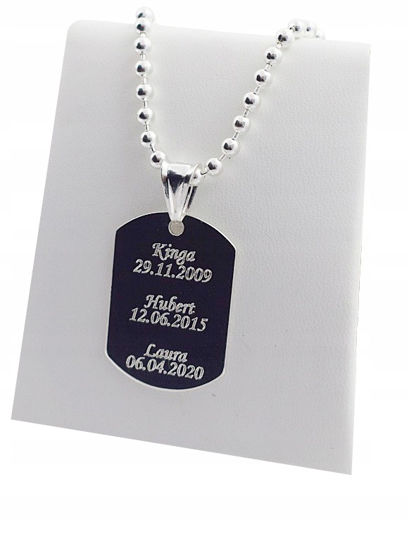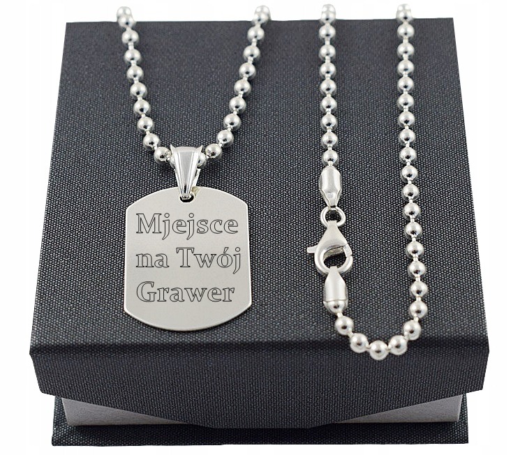 - jaki grawer mamy umieścić na zawieszce do 50 znaków na stronę (im więcej znaków tym mniejsza czcionka)