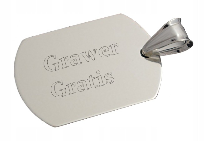 Grawer – wykonujemy rylcem diamentowym na wysokiej klasy markowym sprzęcie, grawerunek jest trwale żłobiony w materiale co sprawia że napis jest precyzyjny, niepowtarzalny, pięknie się prezentuje, nigdy nie ulegnie samoistnemu zatarciu. Jest on w kolorze materiału czyli srebrnym.