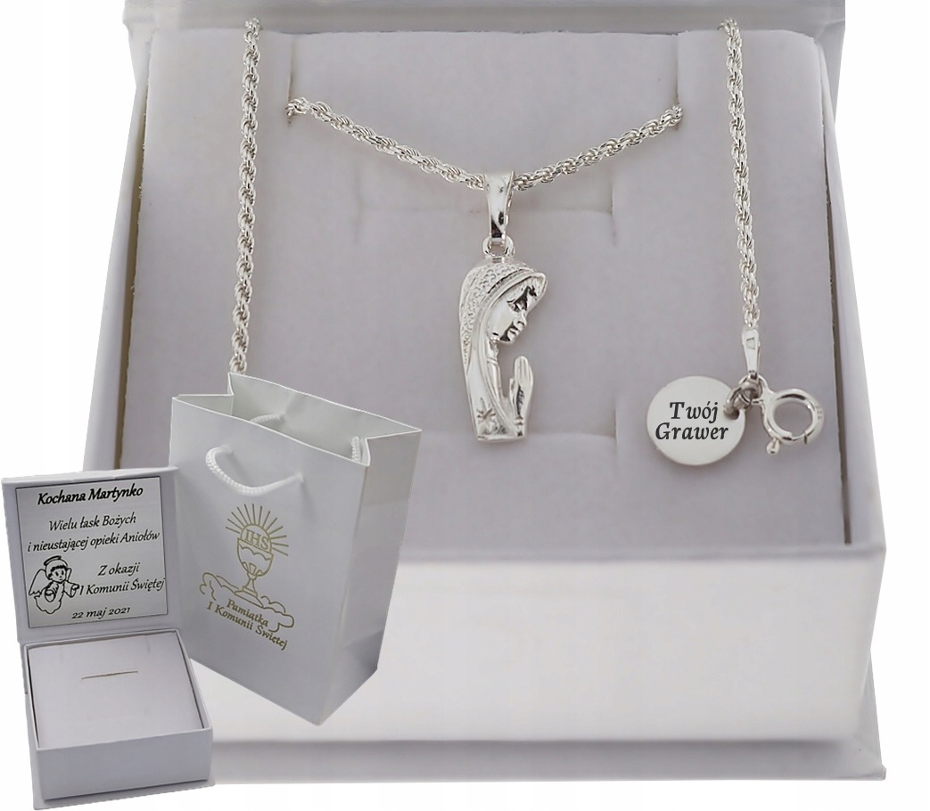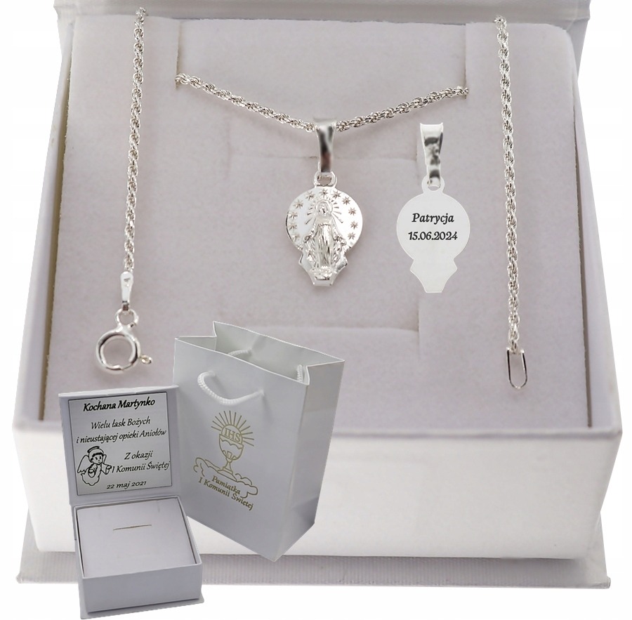SREBRNY ŁAŃCUSZEK 925 MEDALIK KOMUNIA GRAWER