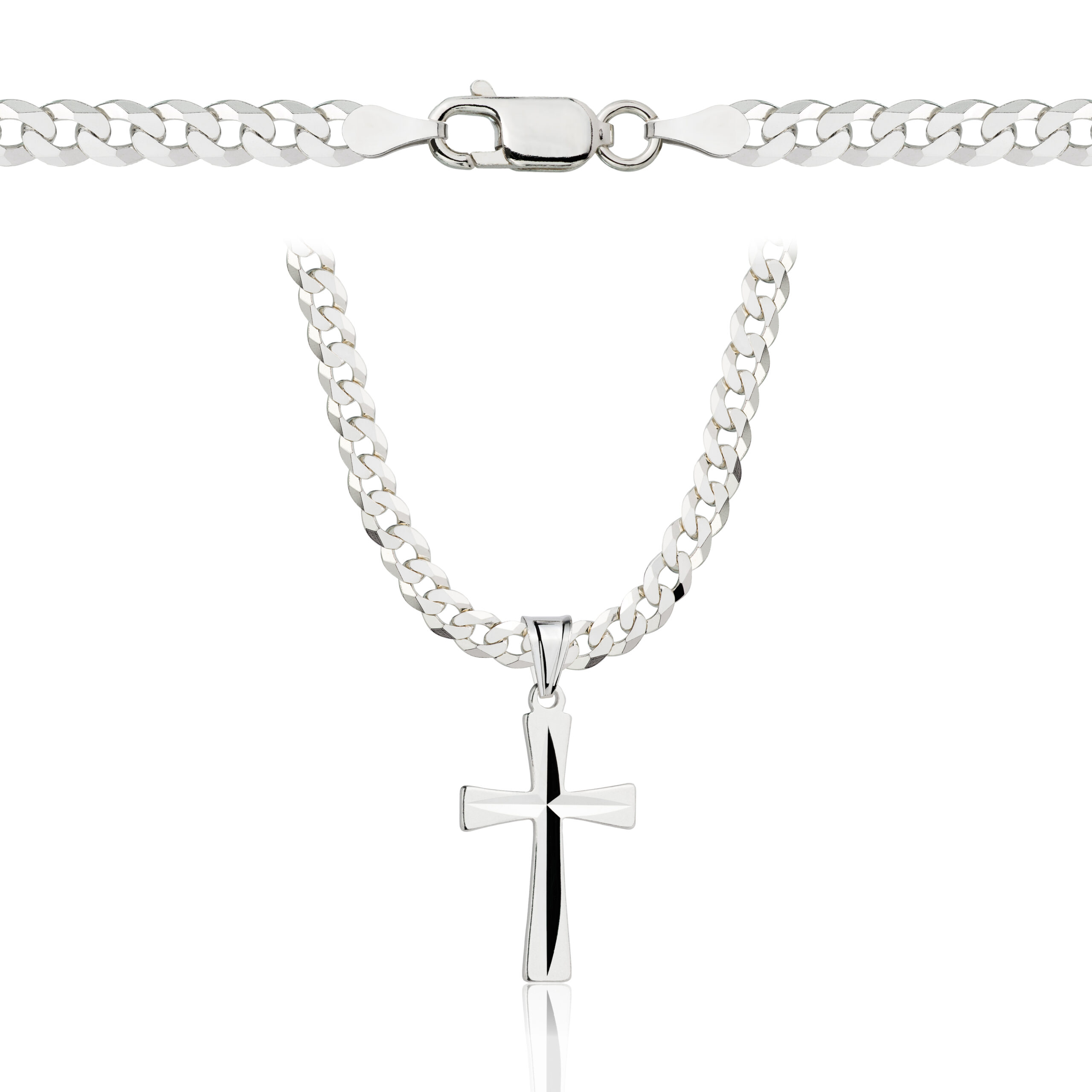 SREBRNY ŁAŃCUSZEK PANCERKA Z KRZYŻYKIEM PR. 925 2 MM