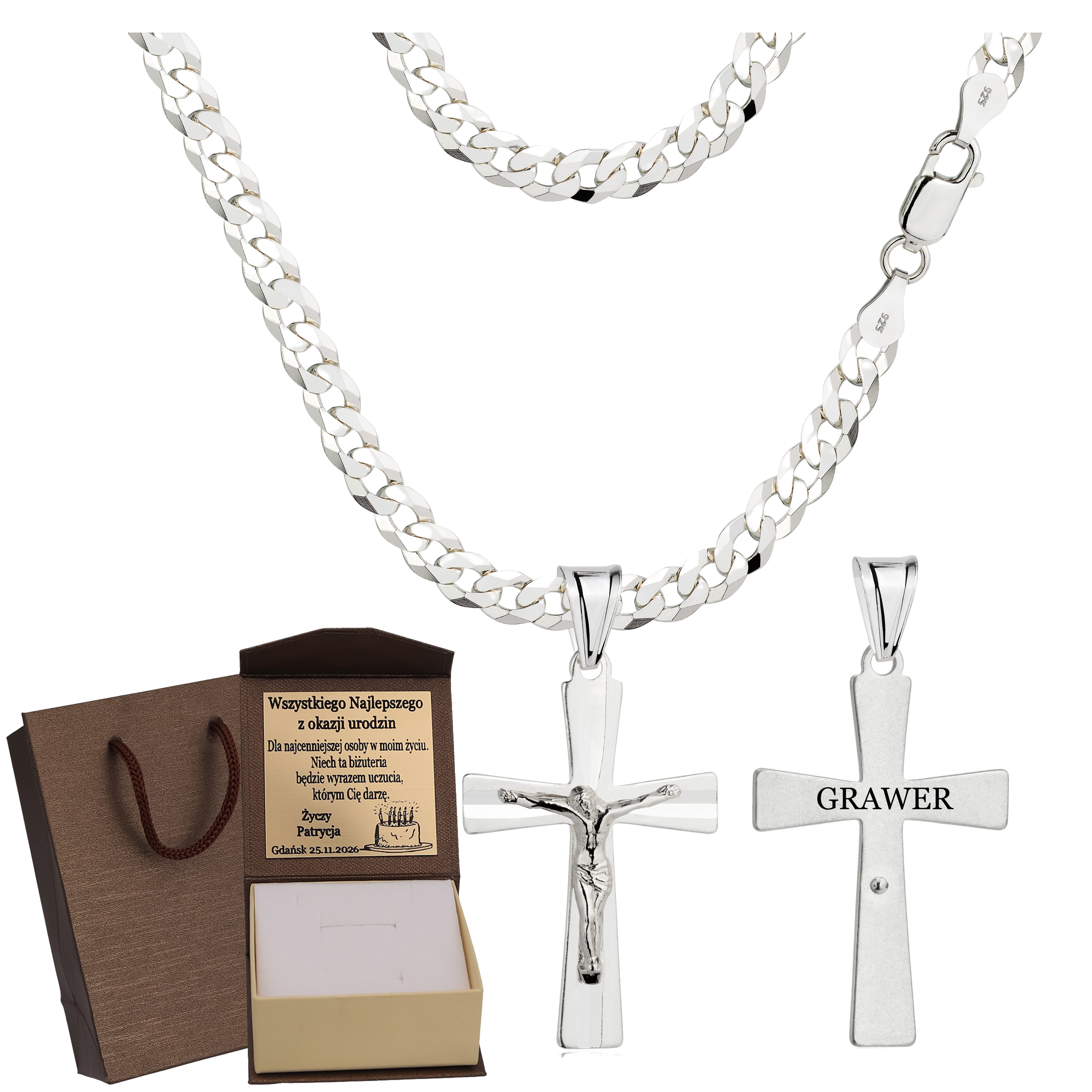 SREBRNY PEŁNY ŁAŃCUSZEK MĘSKI PANCERKA Z KRZYŻYKIEM PR. 925