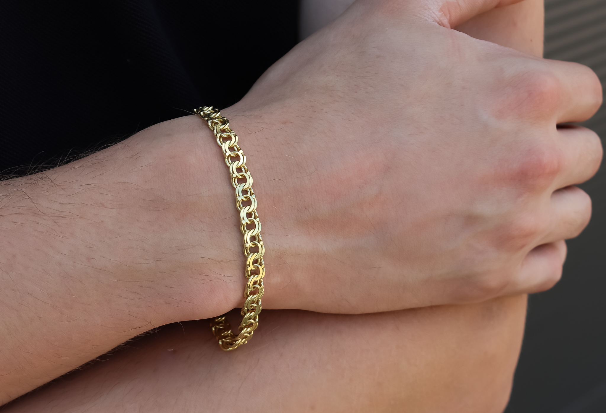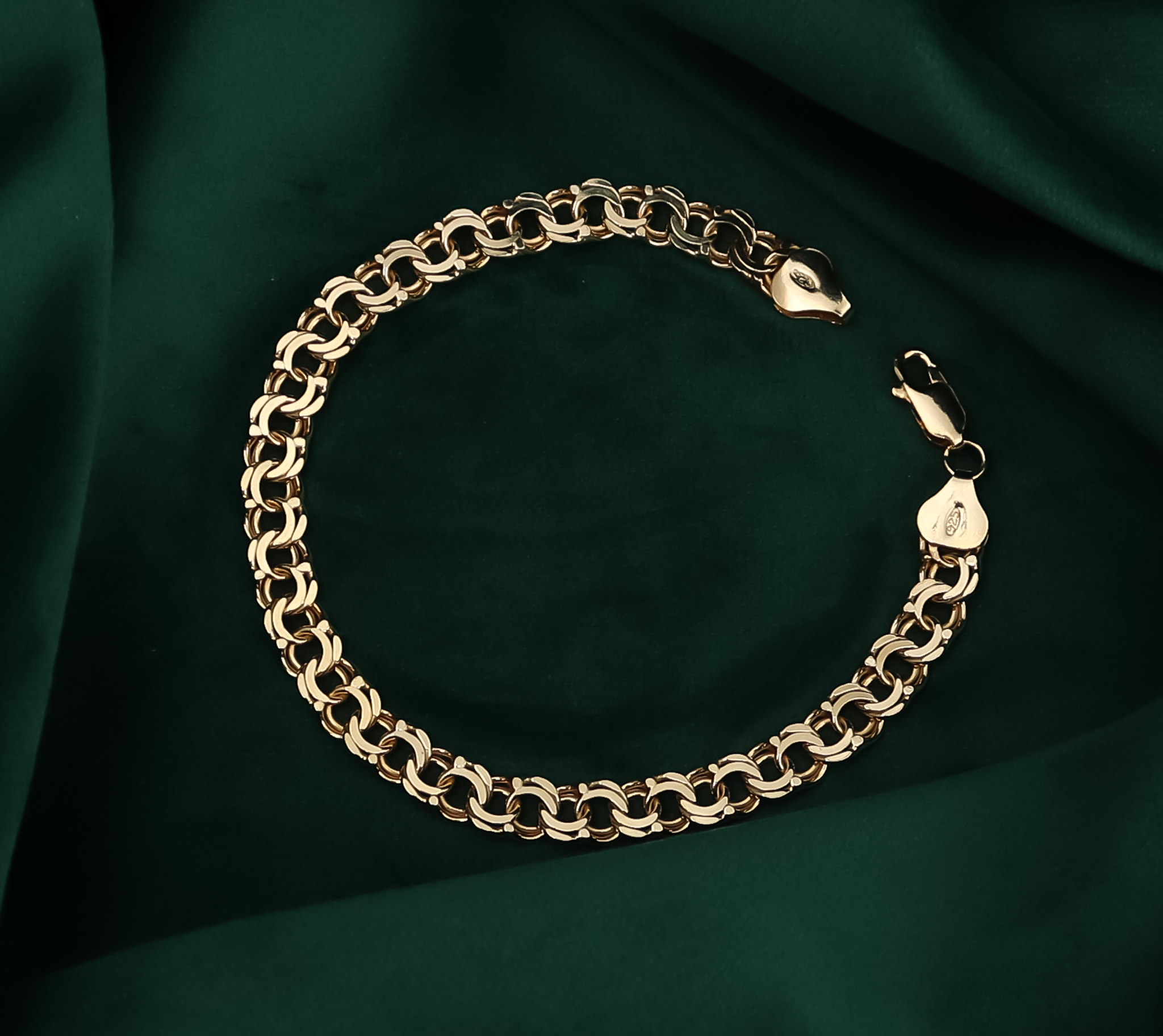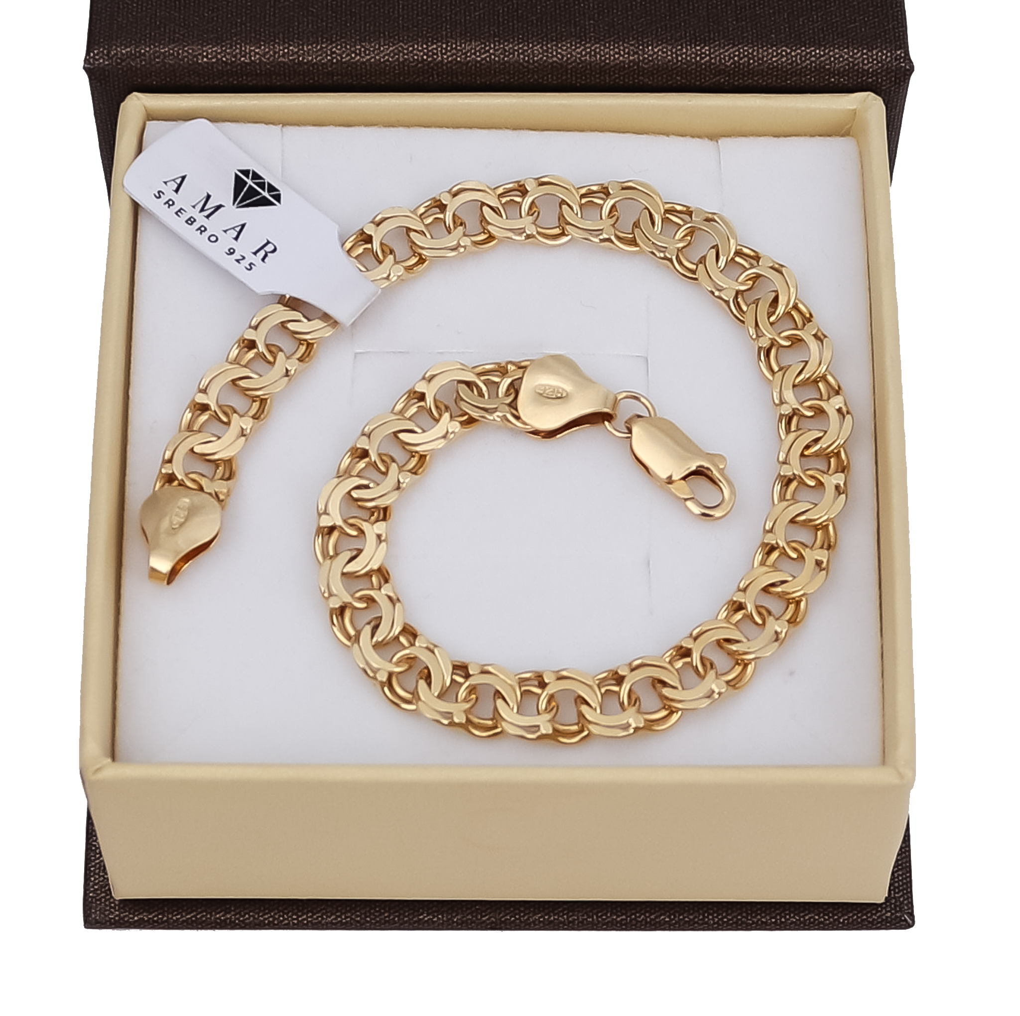 Oferujemy państwu włoski wyrób – bransoletka o splocie galibardi. Produkt został wykonany z najwyższej jakości srebra próby 925 a pokryty warstwą złota 585. Ten model bransoletki jest solidny i wytrzymały, więc spokojnie będzie służyła długie lata. Idealna biżuteria na prezent dla bliskiej osoby.