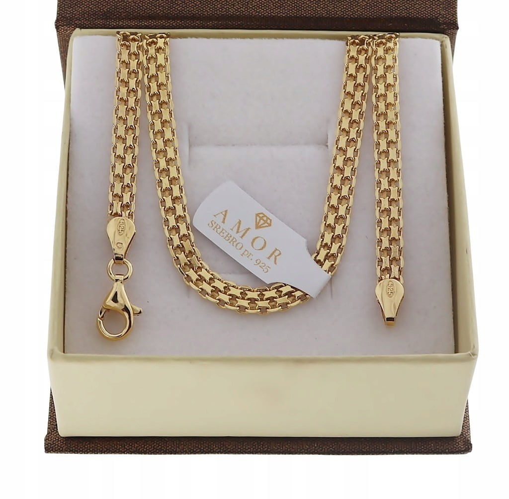 Przedstawiamy państwu łańcuszek o splocie BISMARCK. Produkt został wykonany z najwyższej jakości srebra próby 925. Ten model łańcuszka jest solidny i wytrzymały, więc spokojnie posłuży na długie lata. Łańcuszek został pokryty grubą warstwą 14 karatowego złota próby 585.