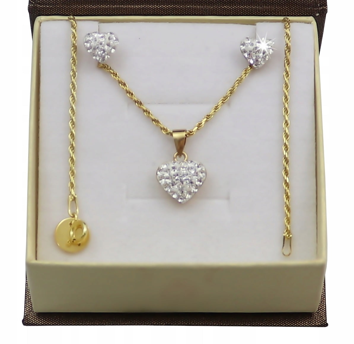 ZŁOTY ŁAŃCUSZEK KORDEL Z ZAWIESZKĄ I KOLCZYKAMI SERCE PR. 925 585 1,6 MM