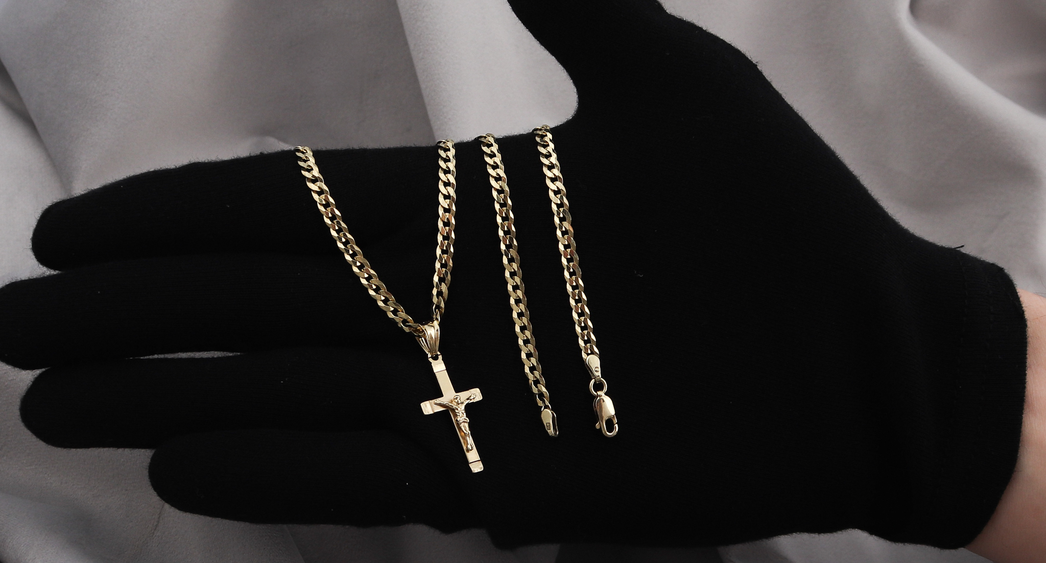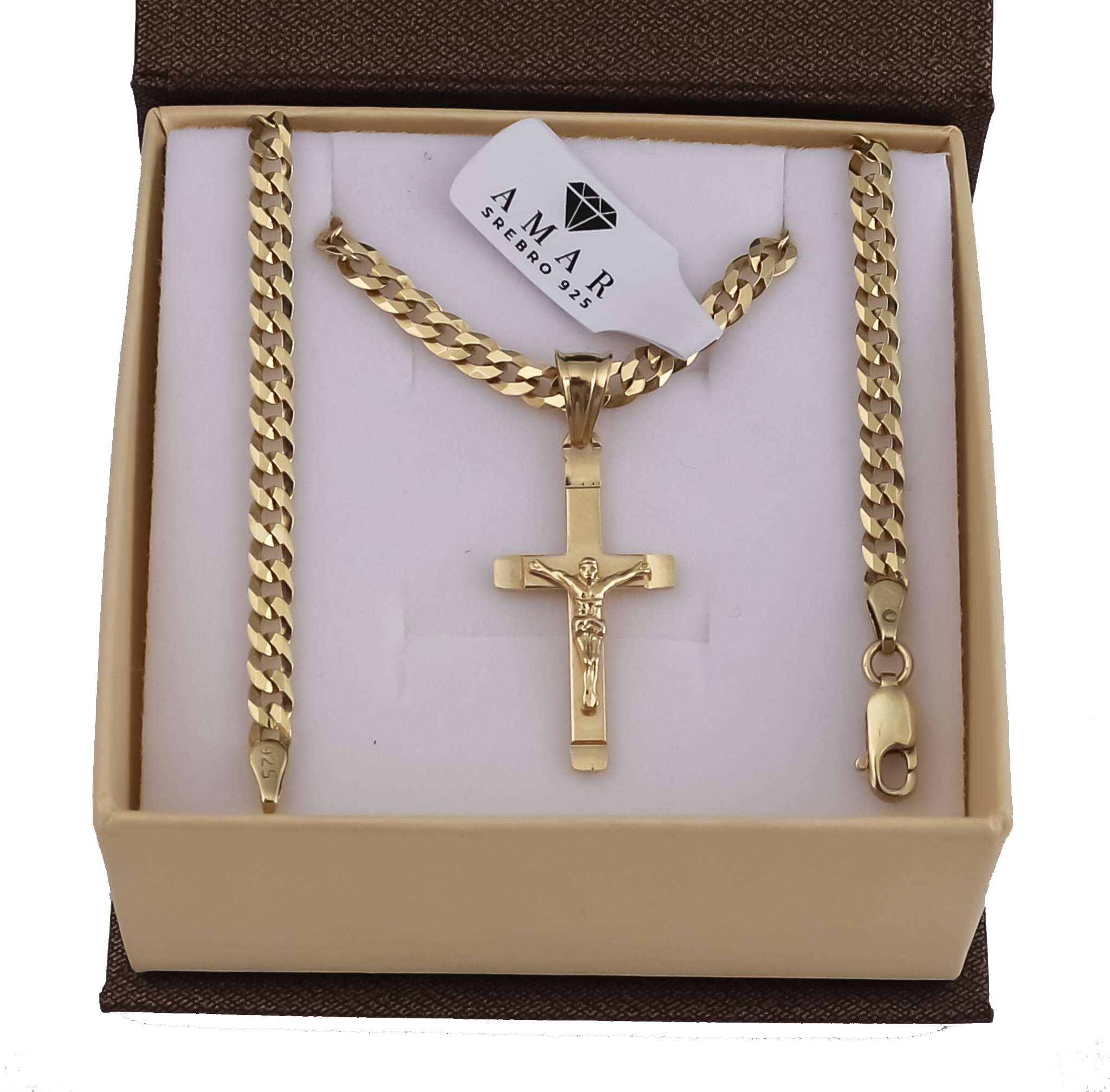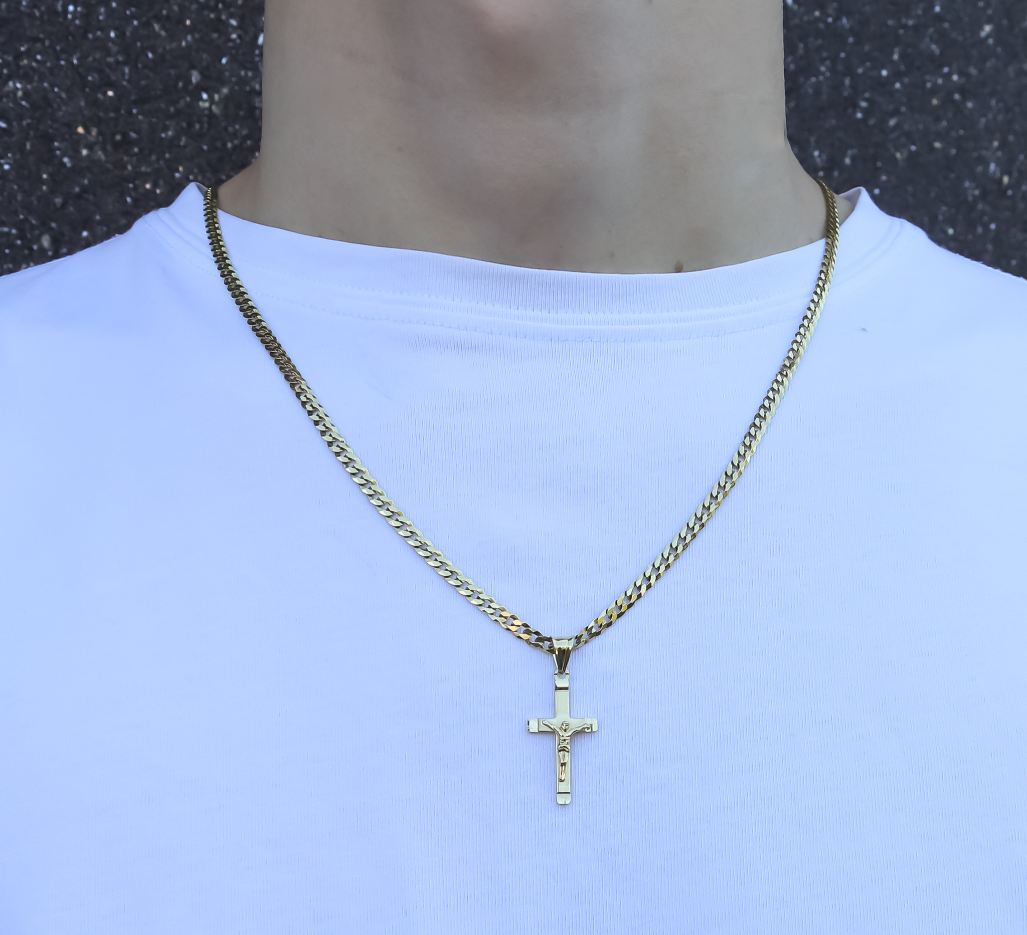 ZŁOTY PEŁNY ŁAŃCUSZEK MĘSKI PANCERKA Z KRZYŻYKIEM PR. 925 585 GRAWER GRATIS