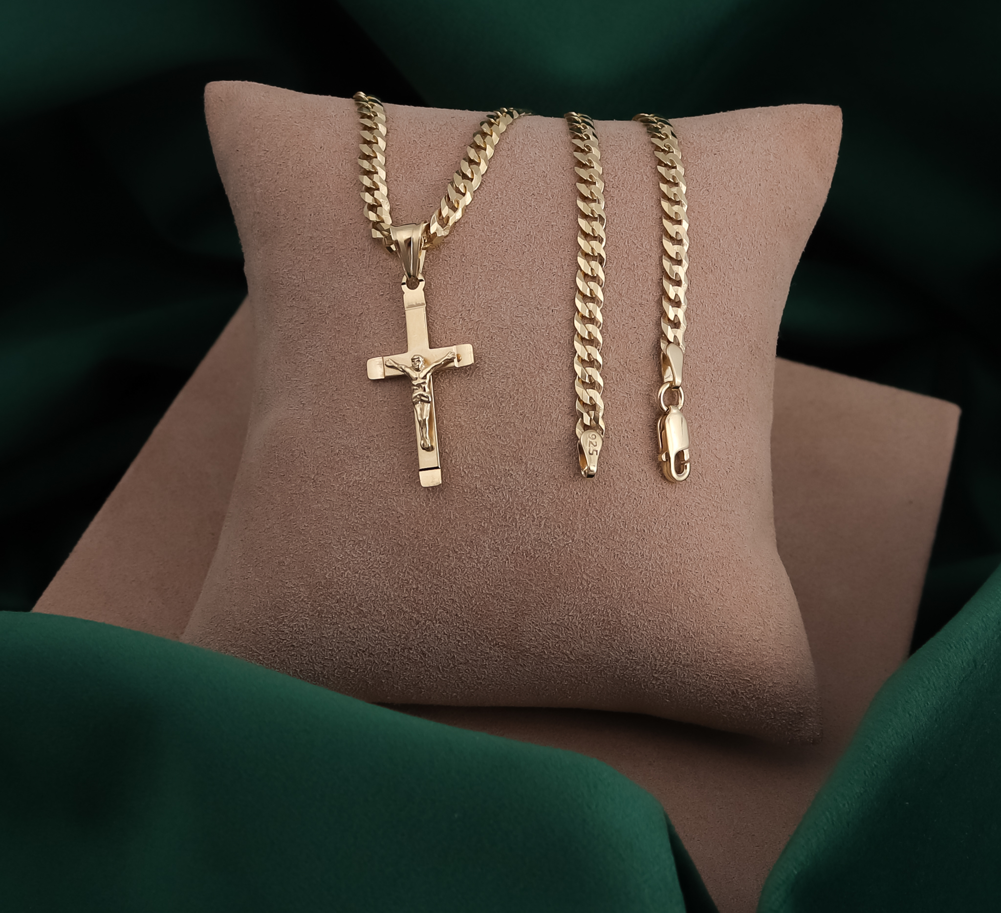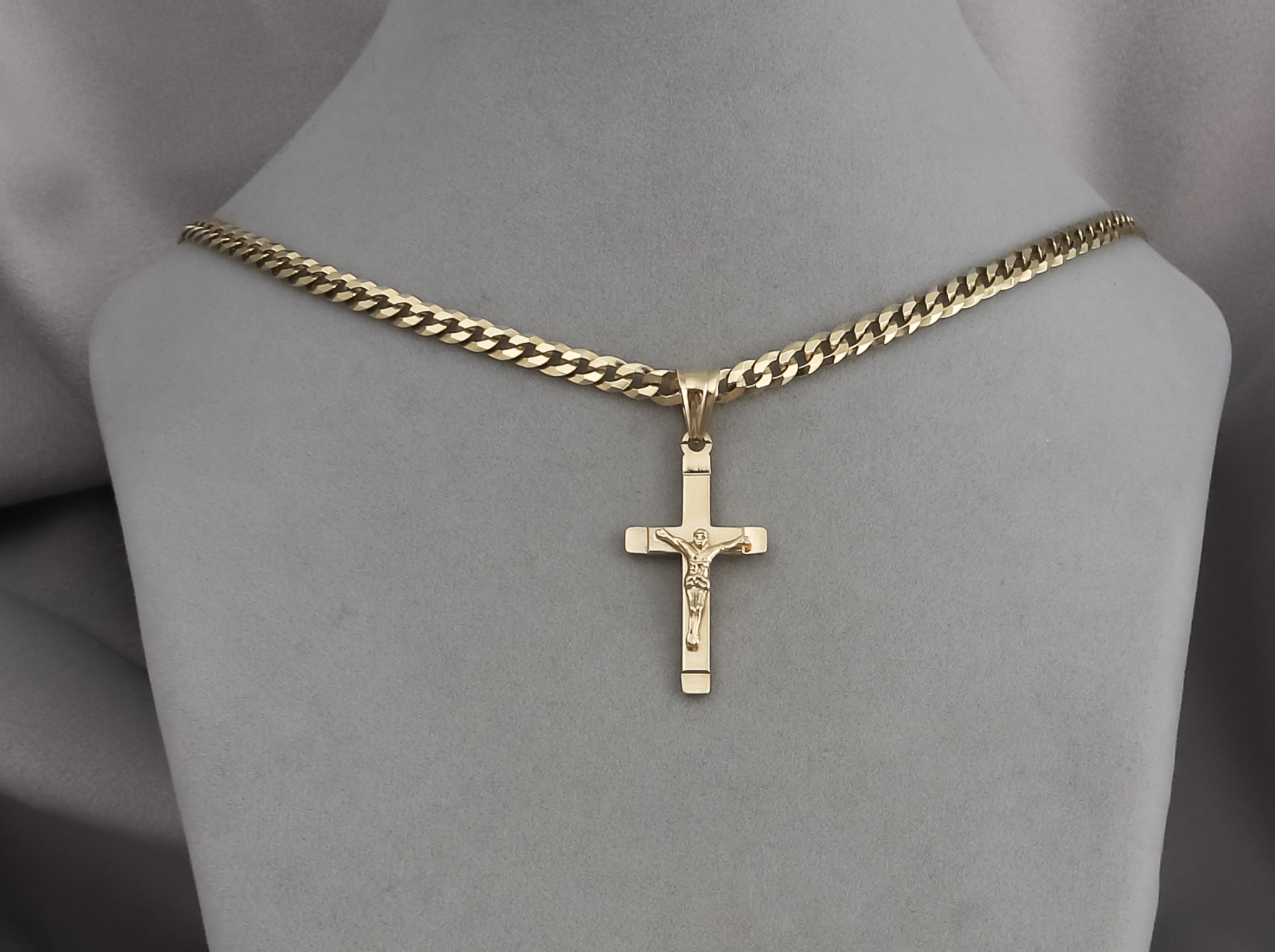 ZŁOTY ŁAŃCUSZEK PANCERKA Z KRZYŻYKIEM PR. 925 585 3,8 MM