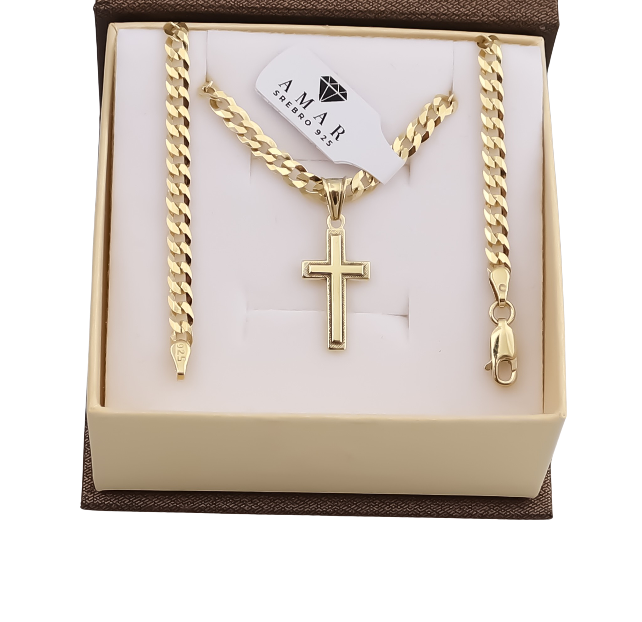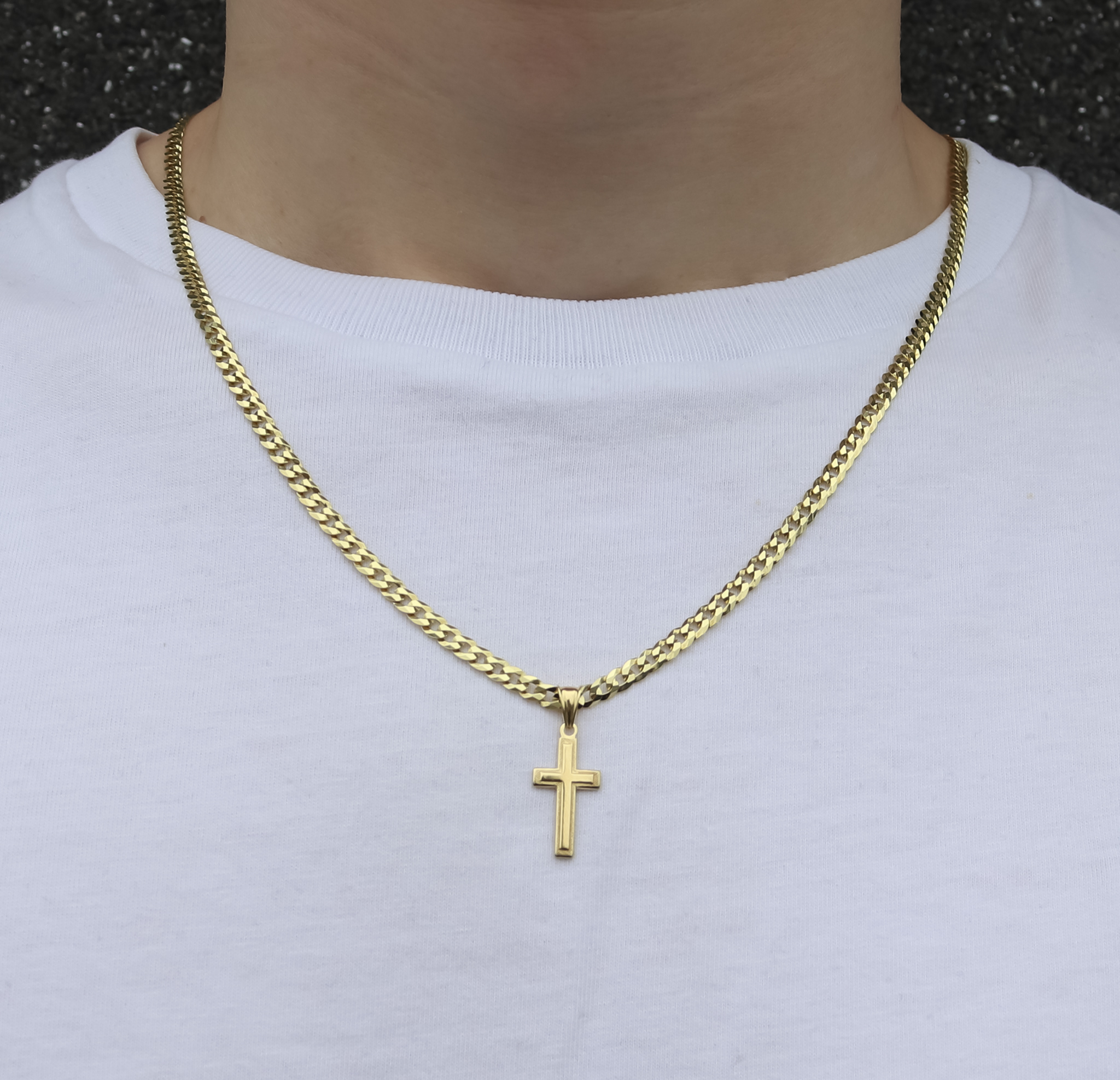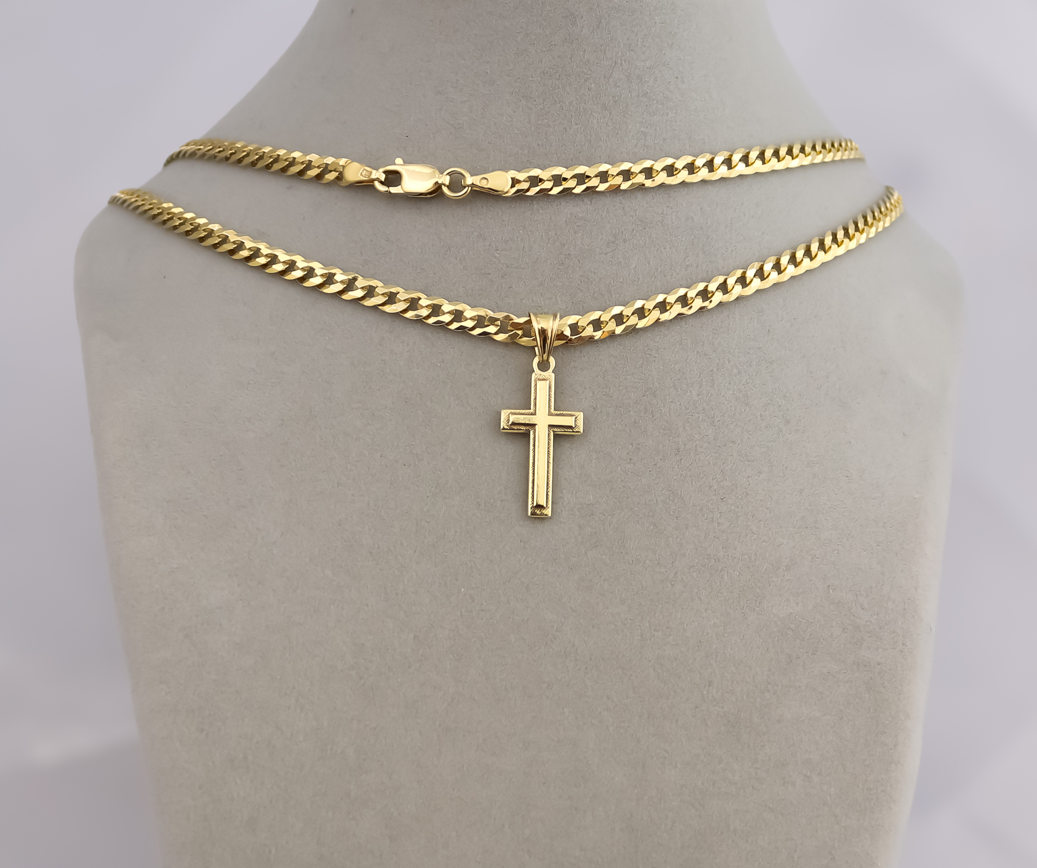 ZŁOTY ŁAŃCUSZEK PANCERKA Z KRZYŻYKIEM PR. 925 585 3,8 MM