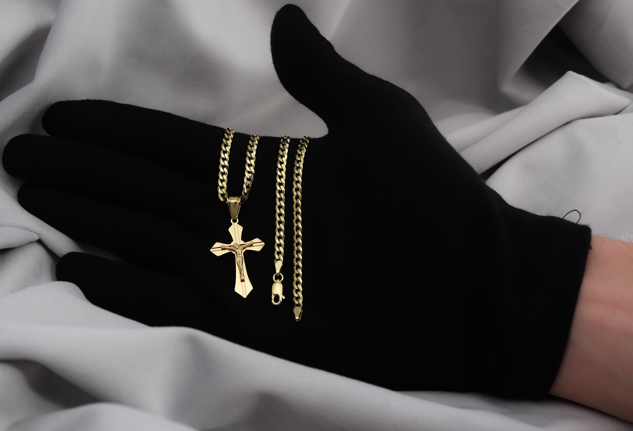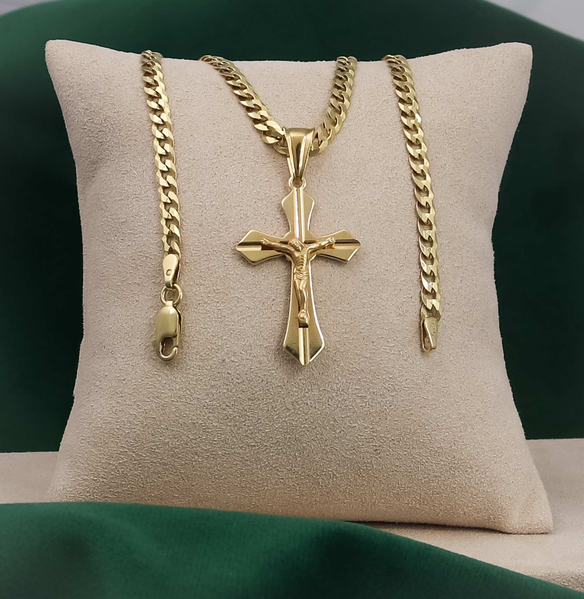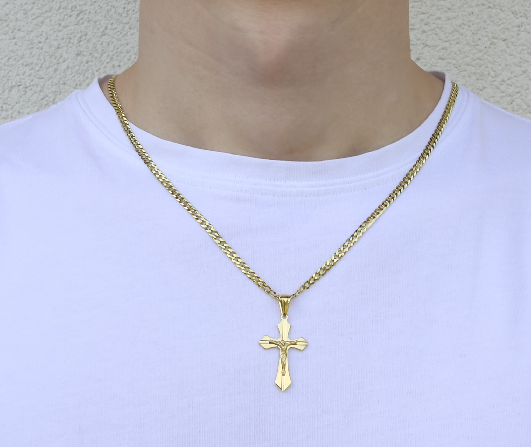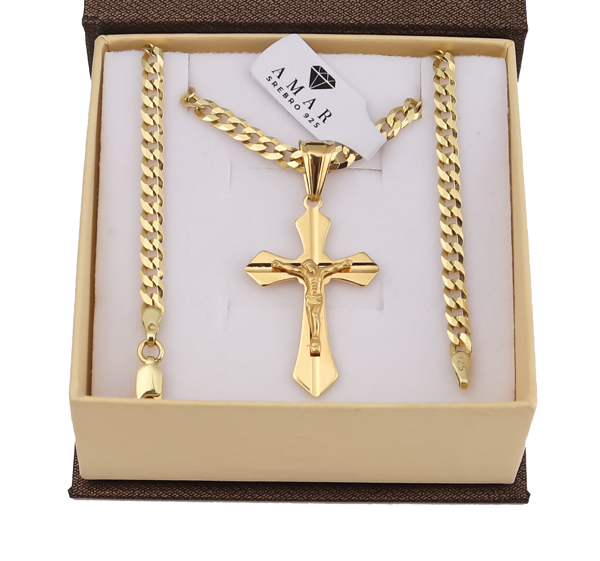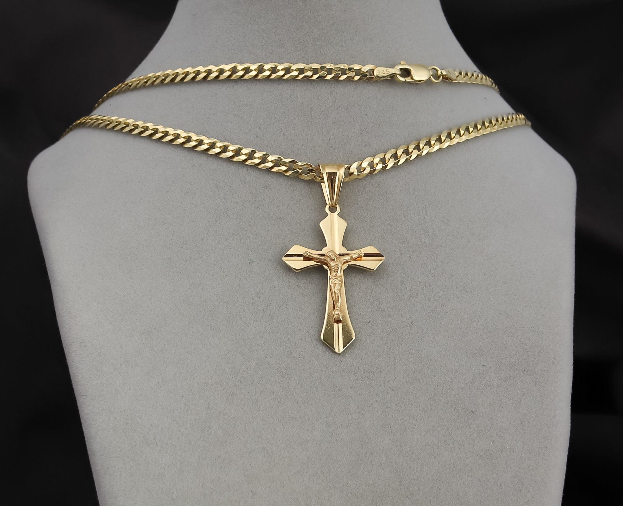 ZŁOTY PEŁNY ŁAŃCUSZEK MĘSKI PANCERKA Z KRZYŻYKIEM PR. 925 585 GRAWER GRATIS
