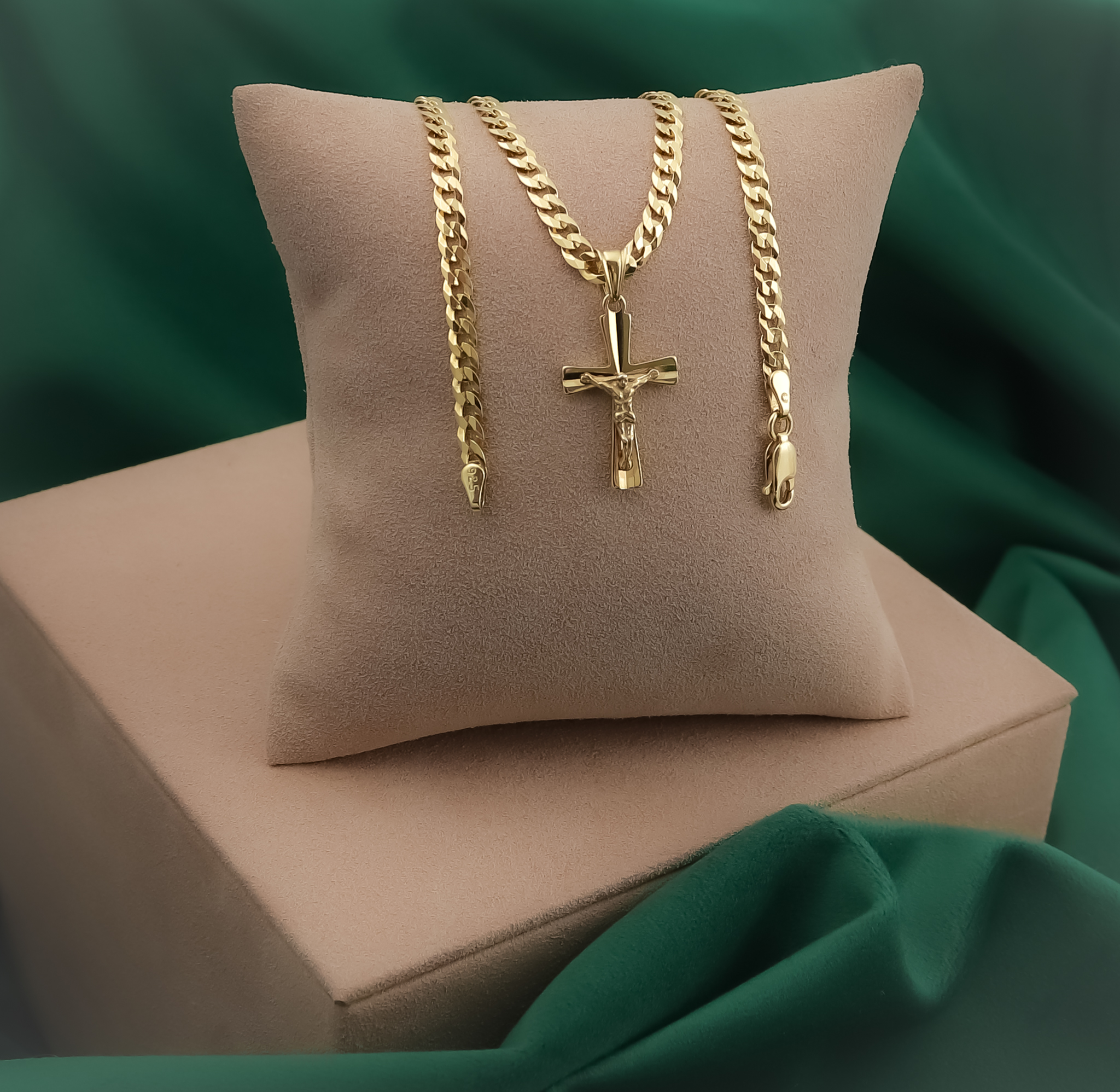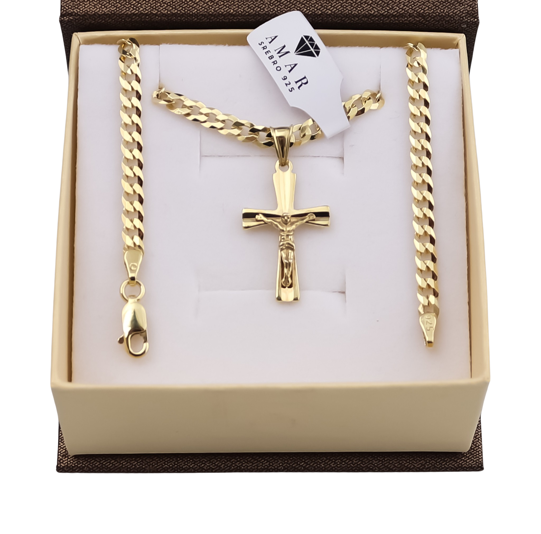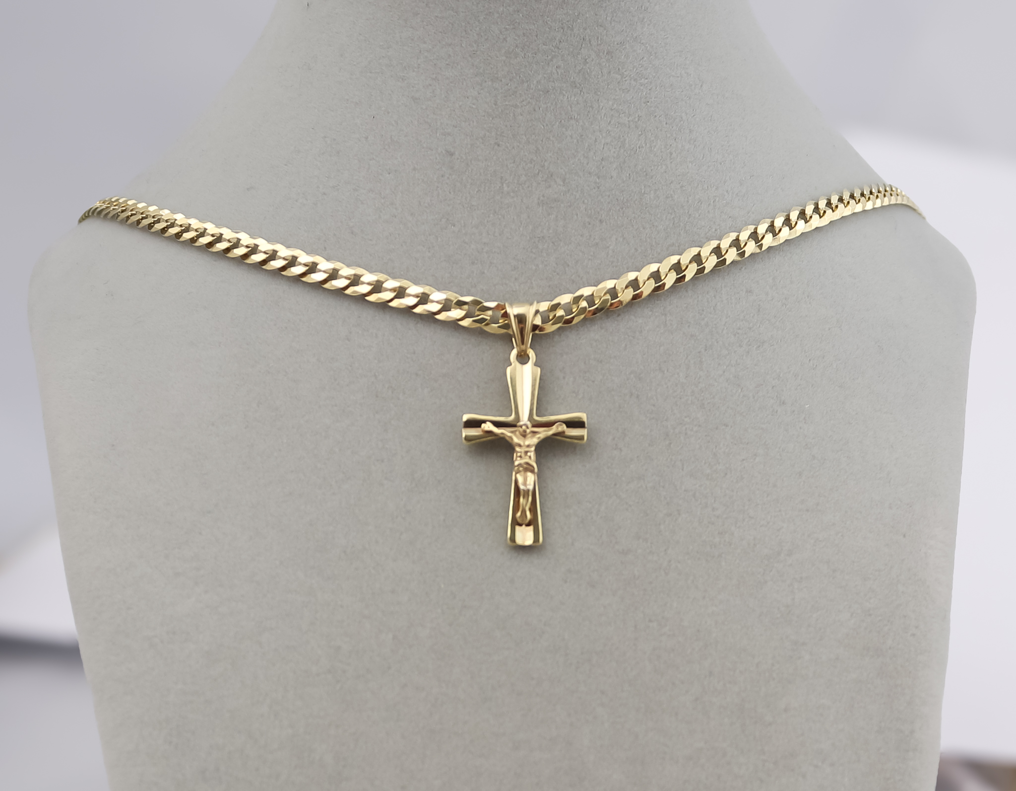 ZŁOTY ŁAŃCUSZEK PANCERKA Z KRZYŻYKIEM PR. 925 585 3,8 MM