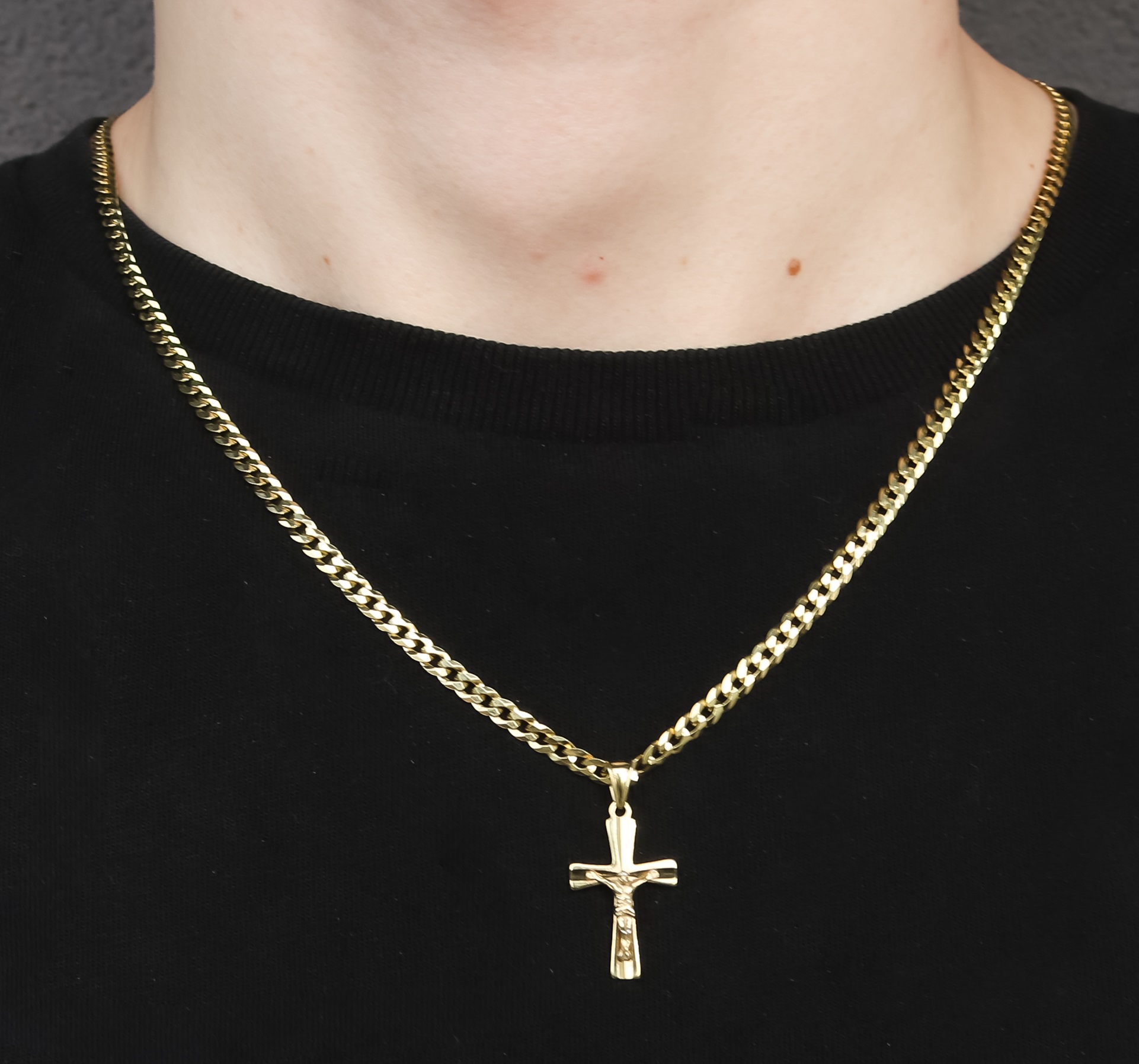 ZŁOTY PEŁNY ŁAŃCUSZEK MĘSKI PANCERKA Z KRZYŻYKIEM PR. 925 585 GRAWER GRATIS 3,8 mm