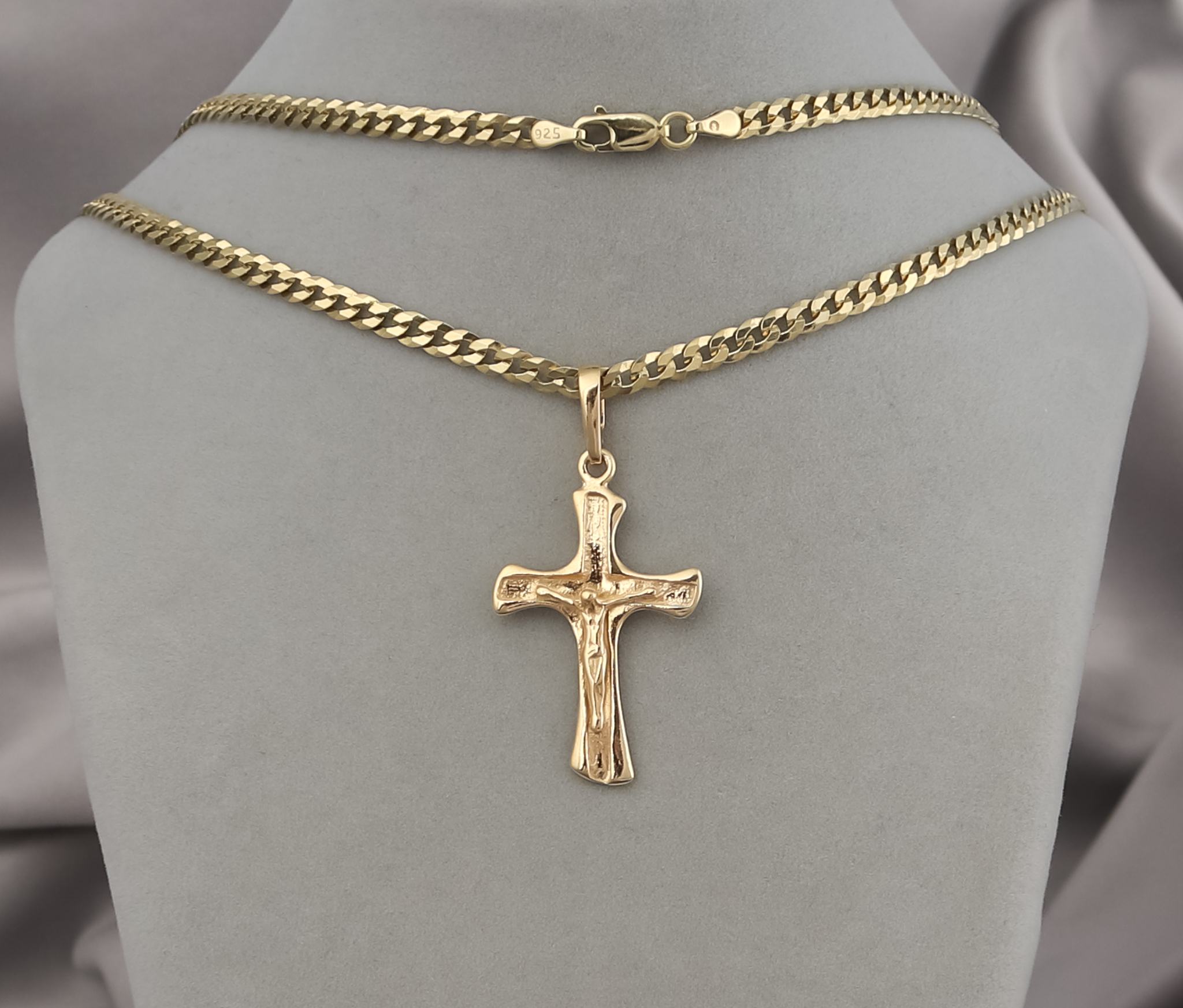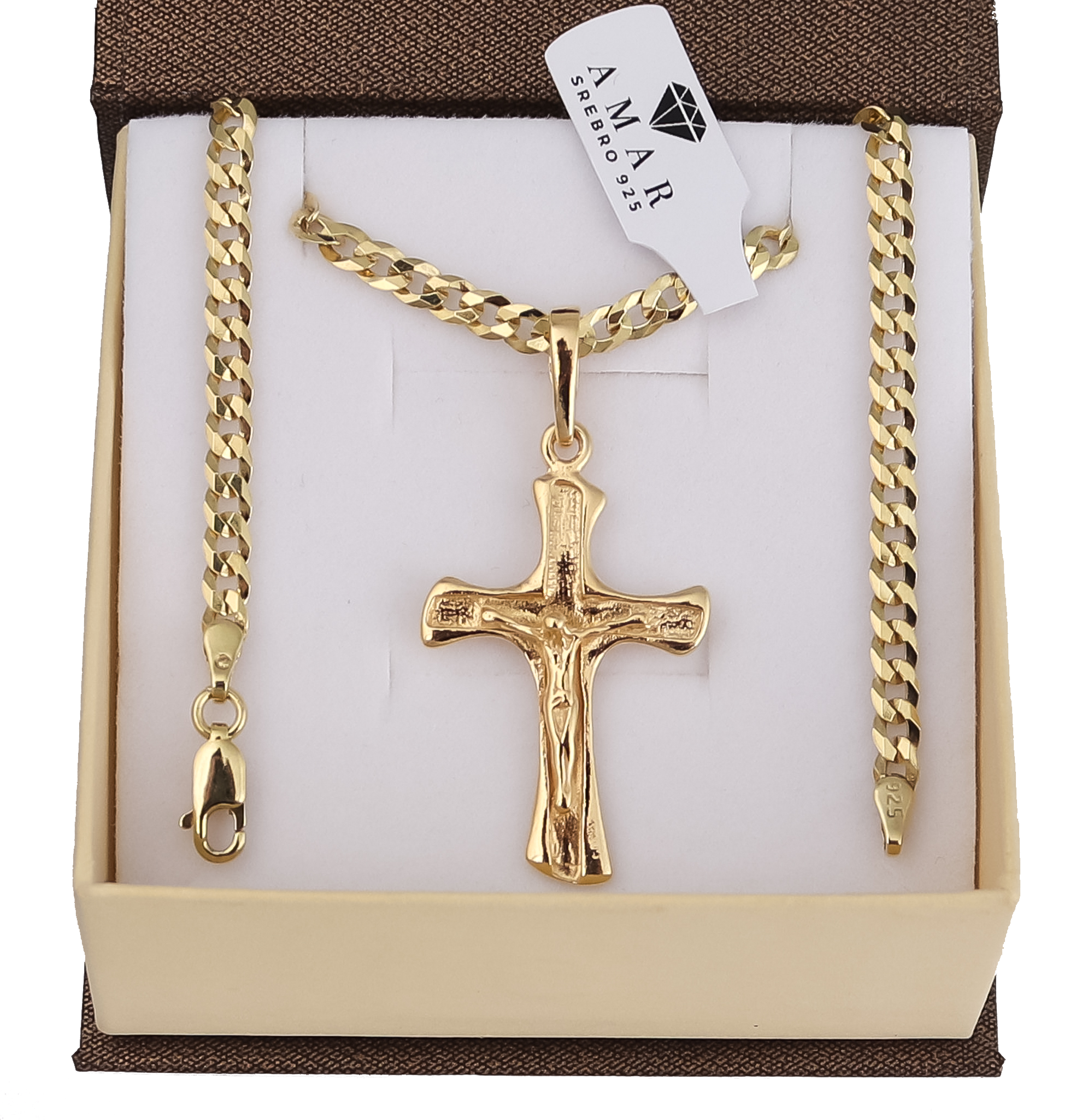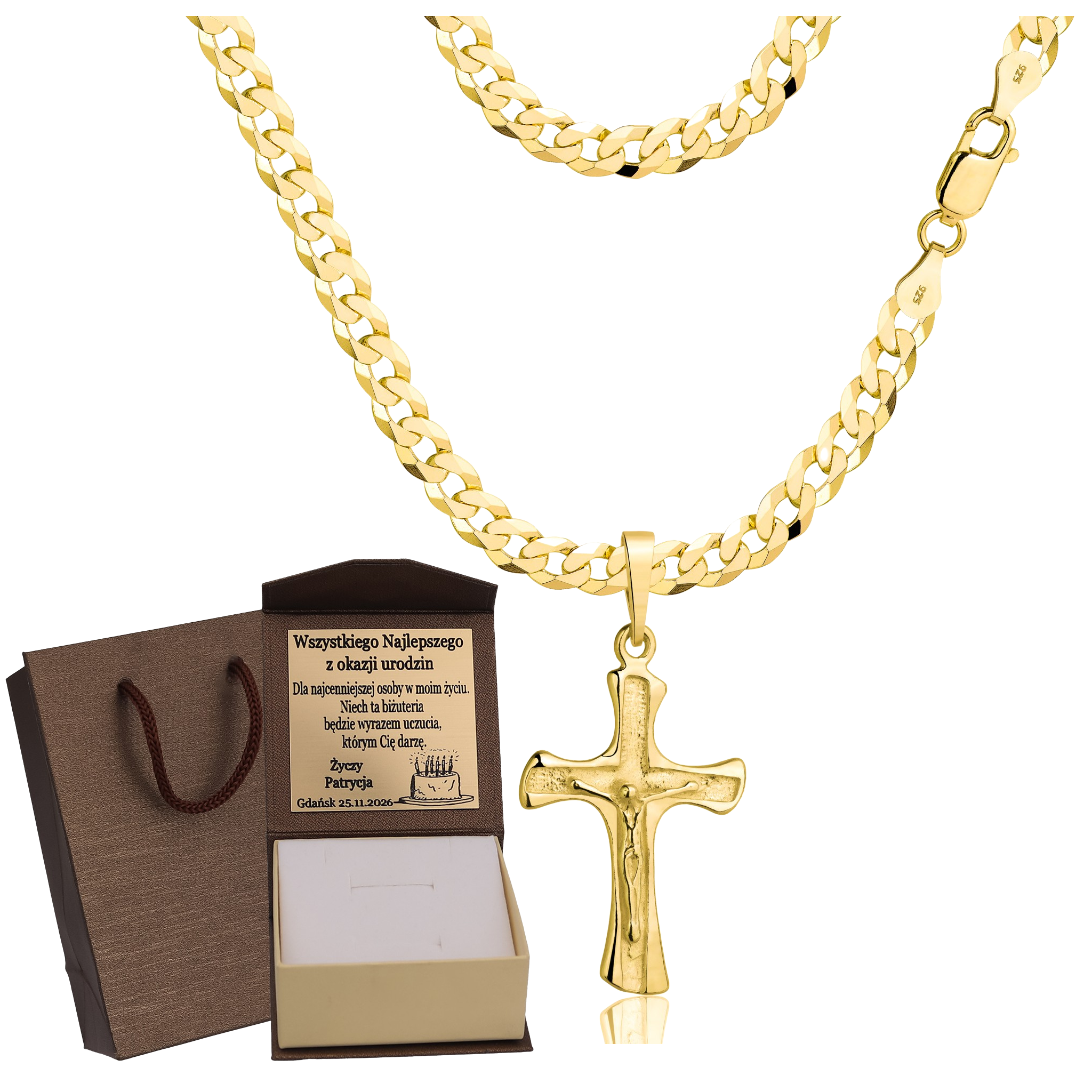 ZŁOTY PEŁNY ŁAŃCUSZEK MĘSKI PANCERKA Z KRZYŻYKIEM PR. 925 585 GRAWER GRATIS