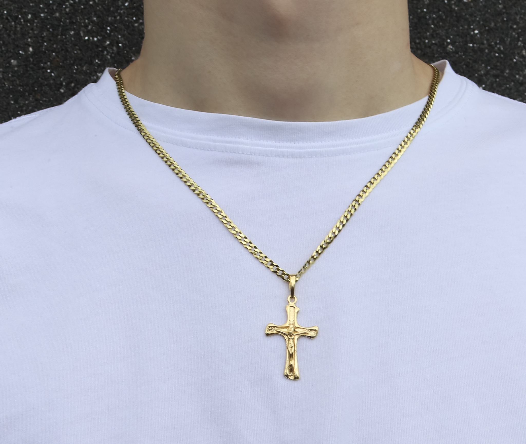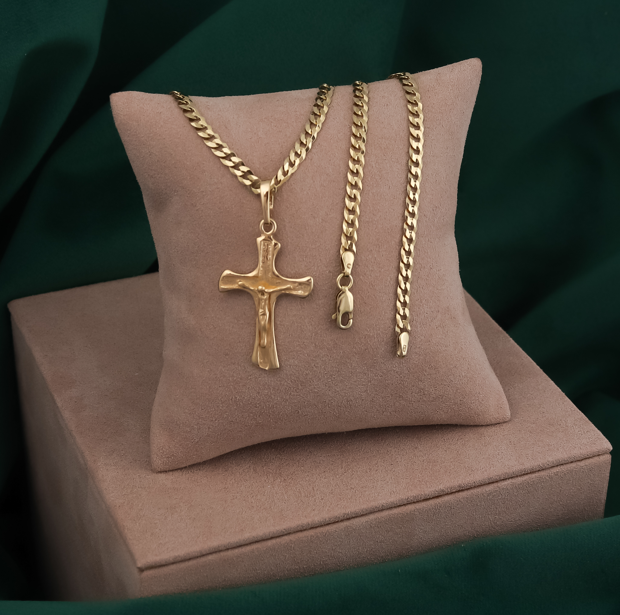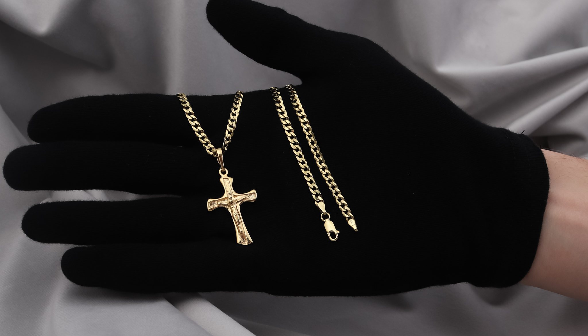 ZŁOTY PEŁNY ŁAŃCUSZEK MĘSKI PANCERKA Z KRZYŻYKIEM PR. 925 585 GRAWER GRATIS