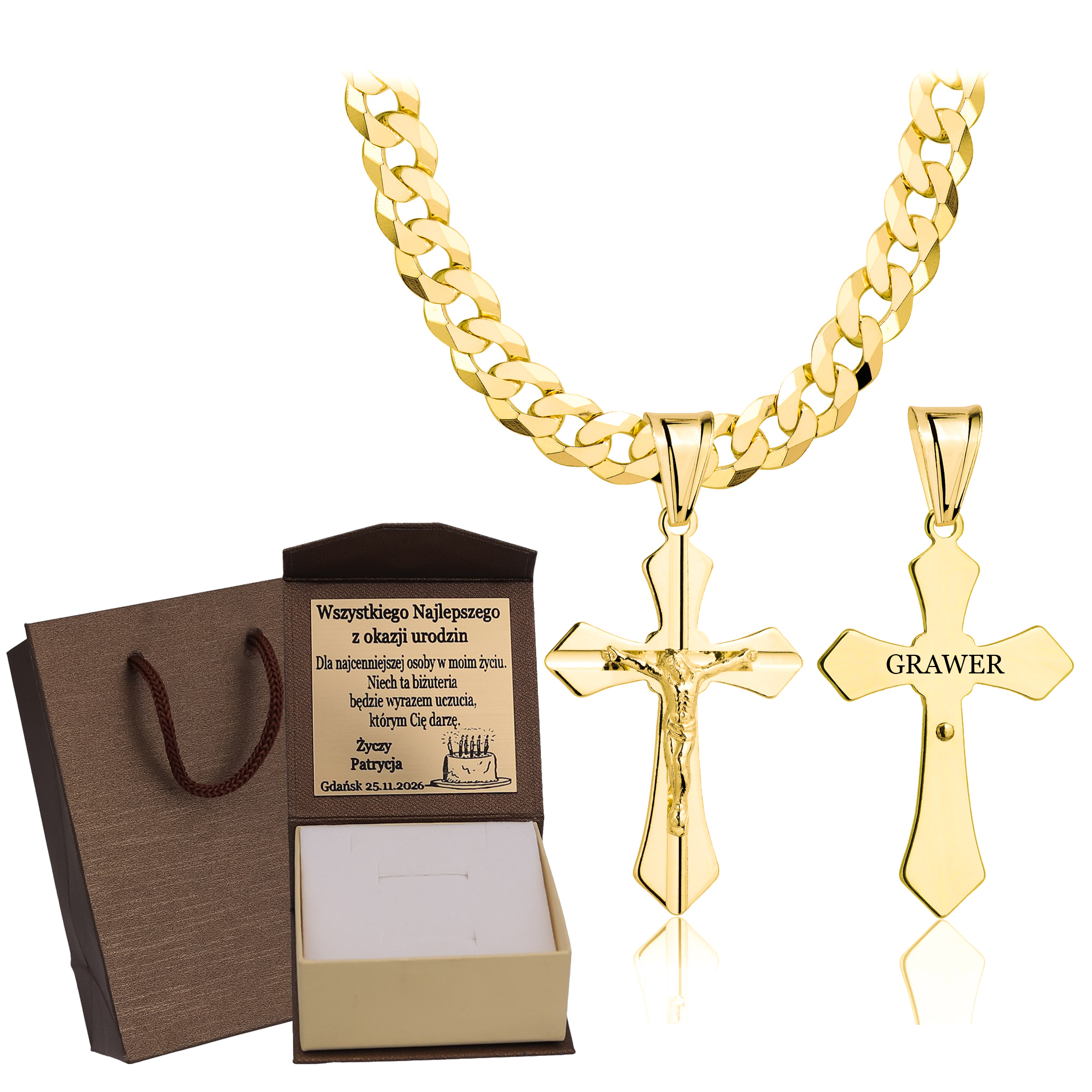 ZŁOTY PEŁNY ŁAŃCUSZEK MĘSKI PANCERKA Z KRZYŻYKIEM PR. 925 585 GRAWER GRATIS